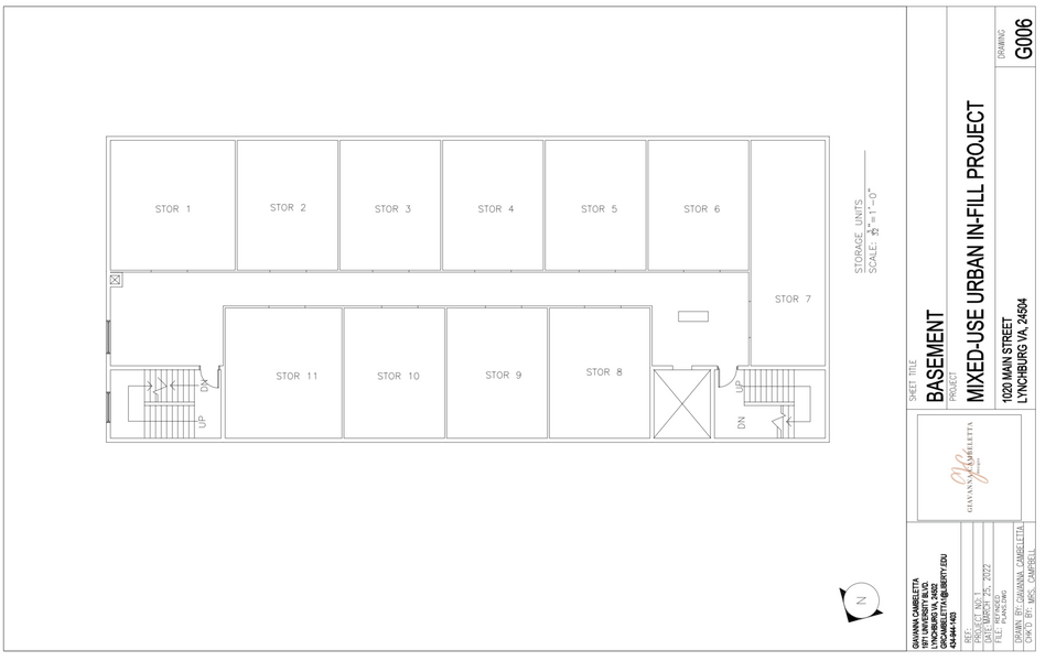 I was tasked with developing the design for a mixed-use urban in-fill project in downtown Lynchburg, VA. Over the course of the semester, I took this project from programming (pre-design), to schematic design, and through design development.