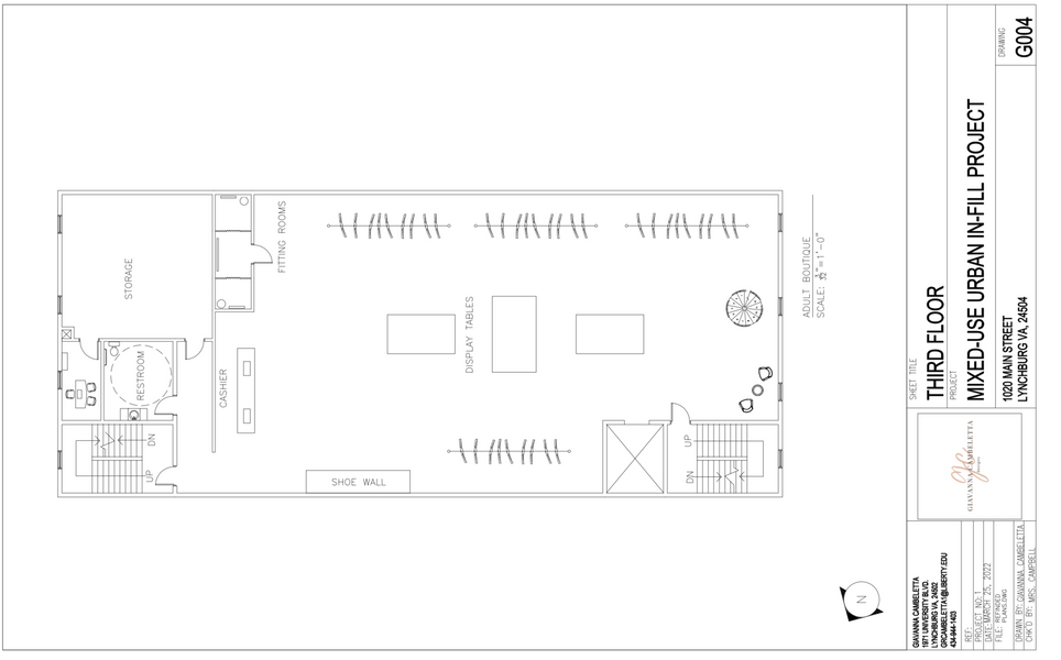 The site for my project was located at 1020 Main Street Lynchburg VA, 24504. It has 50 feet of linear frontage on Main Street. With that in mind, I wanted my mixed-use building to be something that impacted the greater Lynchburg community the best way possible.